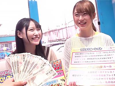 マジックミラー号で姉妹がロシアン手コキに挑戦し、射精罰ゲームで潮吹きと騎乗位アクメ。中出しに悶える官能的な様子が魅力です。(80文字)